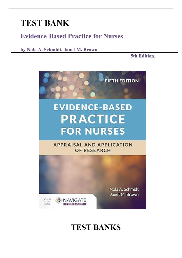 Test Bank for Evidence-Based Practice for Nurses: Appraisal and Application of Research, 5th Edition – Nola A. Schmidt & Janet M. Brown | ISBN 9781284226324 | Verified Exam Prep Resource