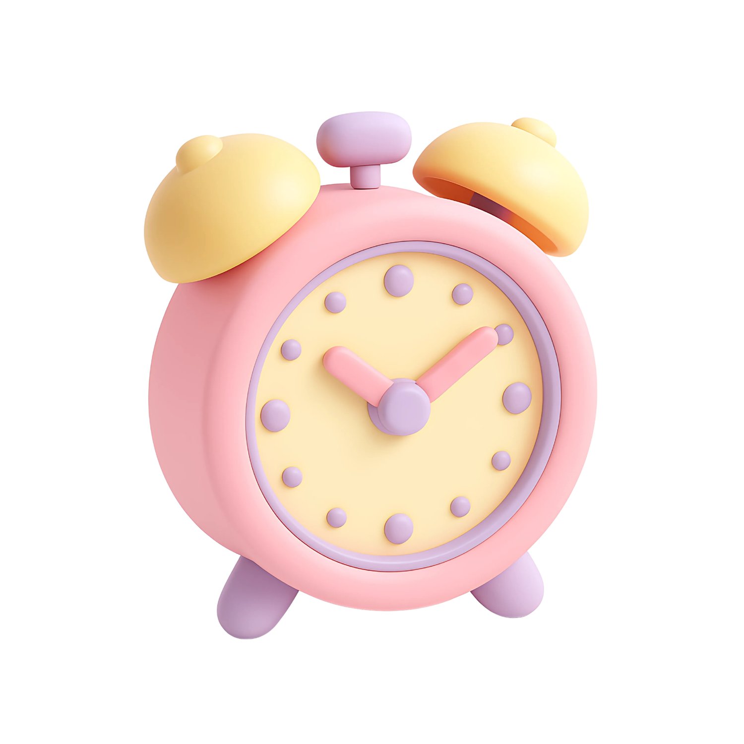 Cute 3D Cartoon Alarm Clock Illustration in Pastel Colors