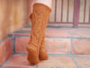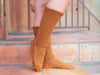 Myrtillus is a pair of house socks, boots if you will, that will keep your toes warm and toasty all winter long. Worked toe up with a gusset and heel flap, and a beautiful cable shrub of blueberries on the back of your leg.