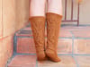 The yarn is heavy, and the needles may seem too small for yarn like this, but the fabric is supposed to be sturdy enough so the cuff can almost stand up by itself! The seed-stitch on the leg will add to the sturdiness.