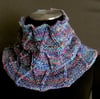 A chunky cowl with the perfect snuggle. Fitted at the jawline and flared to lie smoothly along the larger neckline.