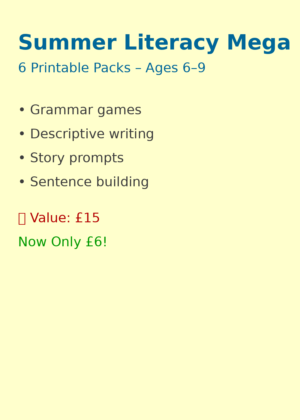 Summer Literacy Mega Bundle – 6 Printable Packs for KS1 & CfE First Level