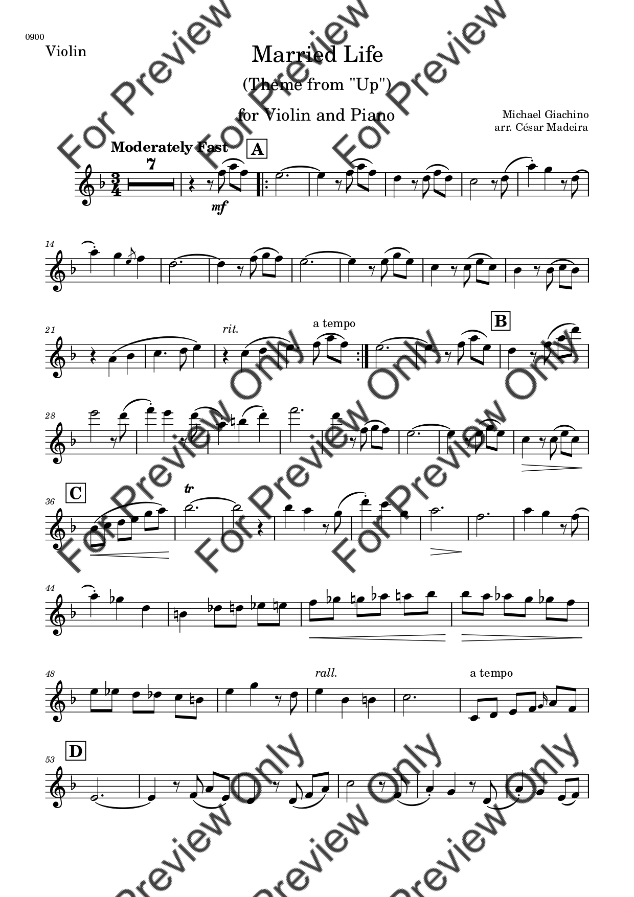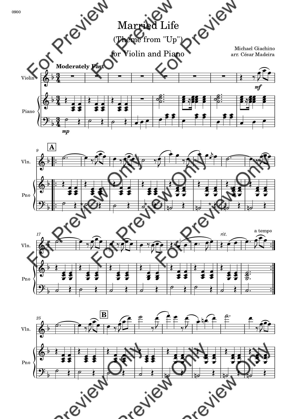 Married Life (from UP) by Michael Giacchino. Arrangement for Violin and Piano. With Full Score and Individual Parts. Have fun!