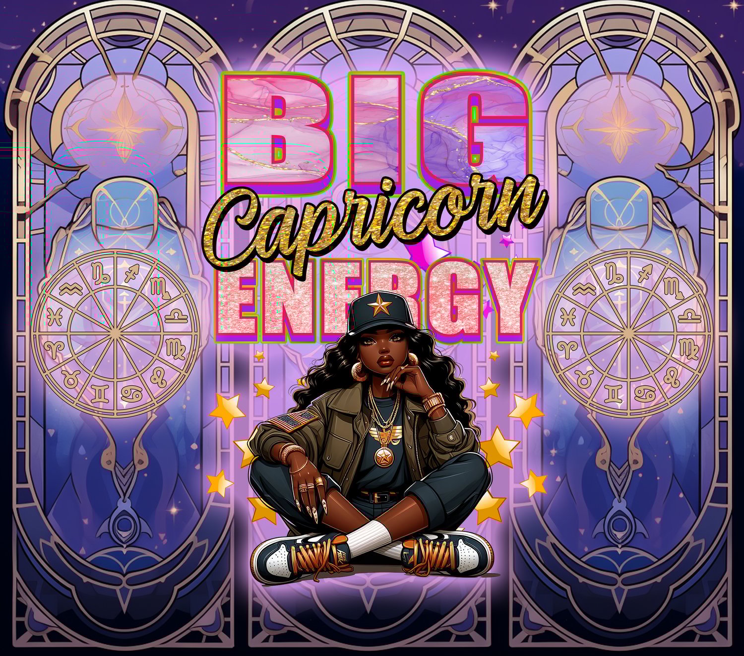 Step into your boss era with this BIG Capricorn Energy tumbler! Perfect for the ambitious, disciplined Capricorn queen. Features a cosmic glam sublimation design and durable stainless steel build.