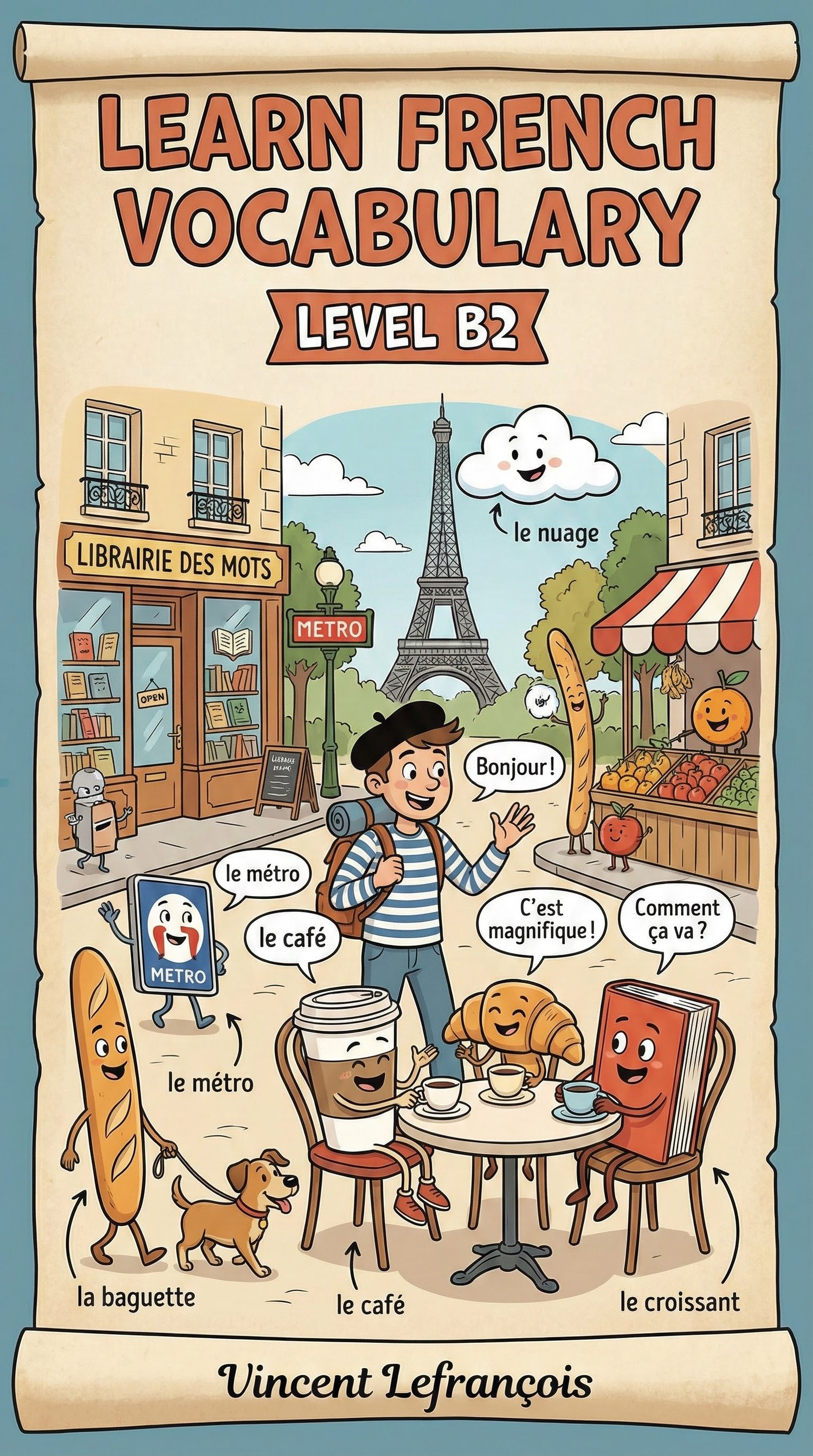 Learn French Vocabulary with Vincent – Level B2 is the fourth volume of the visual vocabulary series, designed for learners who already communicate comfortably in French and want to reach a more advanced level.