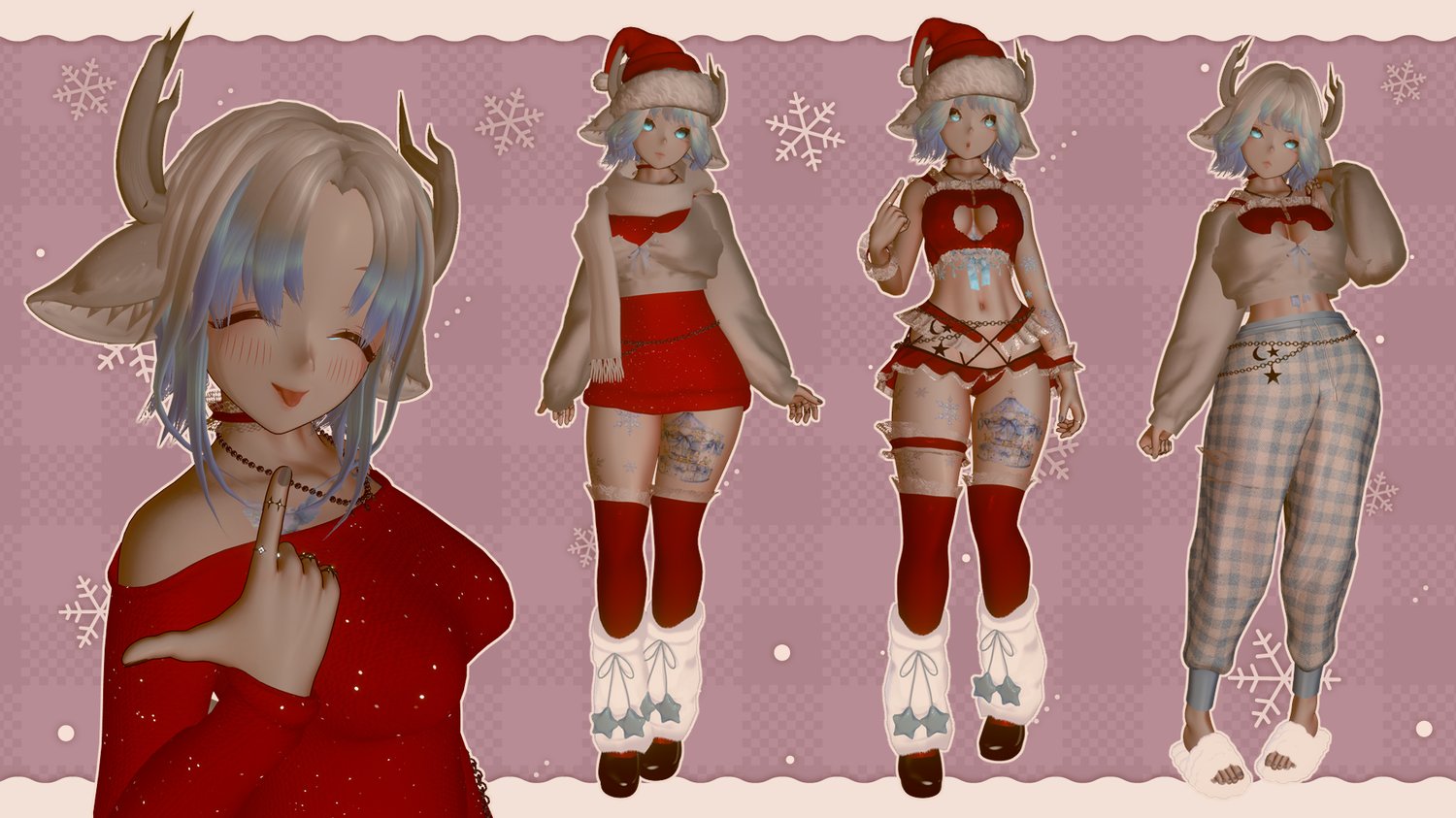 ✧ Clothes: Sweater, Christmas sexy set (top, skirt), comfy pants, cardigan, bra, panties, pasties, heels, slippers, thigh-high