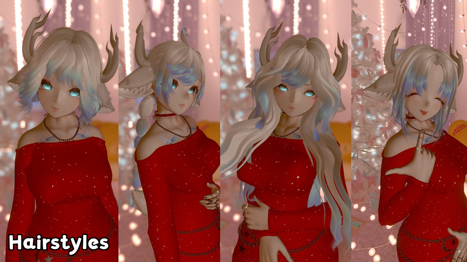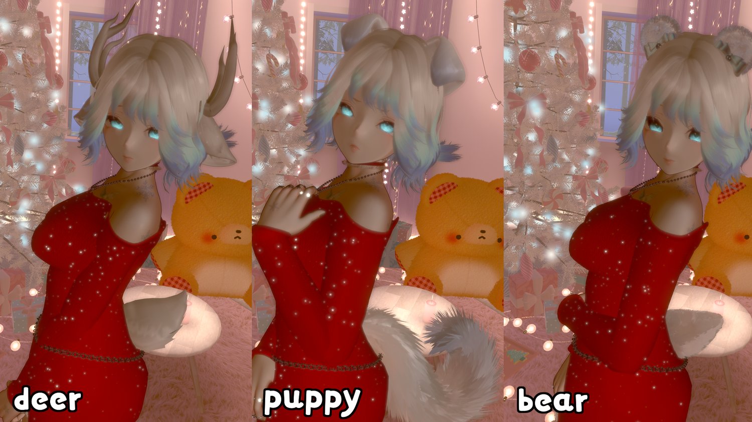 ✧ Species: Reindeer, puppy, bear, human ears, horns, mat swap, hue shift, saturation, brightness