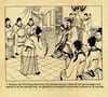 After Emperor Qin Shi Huang unified the six states, he feared rebellion from the people. He adopted policies like "burning books and burying scholars alive" to control thought. A young man named Wan Xiliang, unwilling to burn his beloved books, escaped and hid in the garden of Elder Meng. Elder Meng and his wife grew fond of Wan Xiliang and arranged for him to marry their daughter, Meng Jiang Nü (Lady Meng Jiang). However, the authorities eventually discovered this, captured Wan Xiliang, and exiled him to the frontier to build the Great Wall.