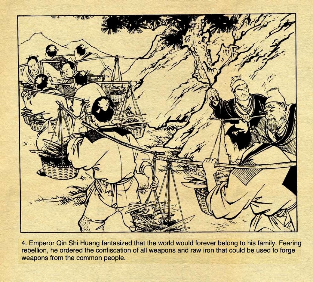 4. Emperor Qin Shi Huang fantasized that the world would forever belong to his family. Fearing rebellion, he ordered the confiscation of all weapons and raw iron that could be used to forge weapons from the common people.