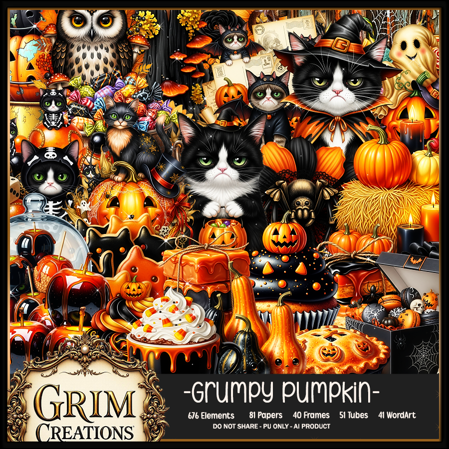 Say hello to Grumpy Pumpkin the kit that proves even the moodiest kitty can steal the Halloween spotlight!