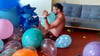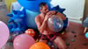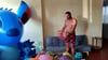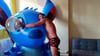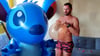 He make a hug the the giant inflatable stitch but diden't pop it.
