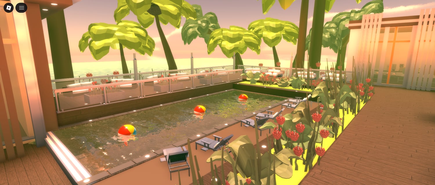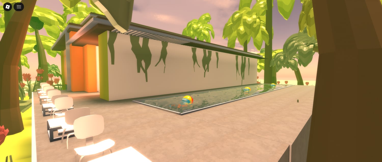 The café includes a detailed dining area, a fully modeled kitchen for staff roleplay, an outdoor pool for leisure scenes, and a small clothing store to add variety and depth to gameplay. Surrounded by natural island scenery, Hazel Cafe creates a calm atmosphere ideal for storytelling and community-driven roleplay.
