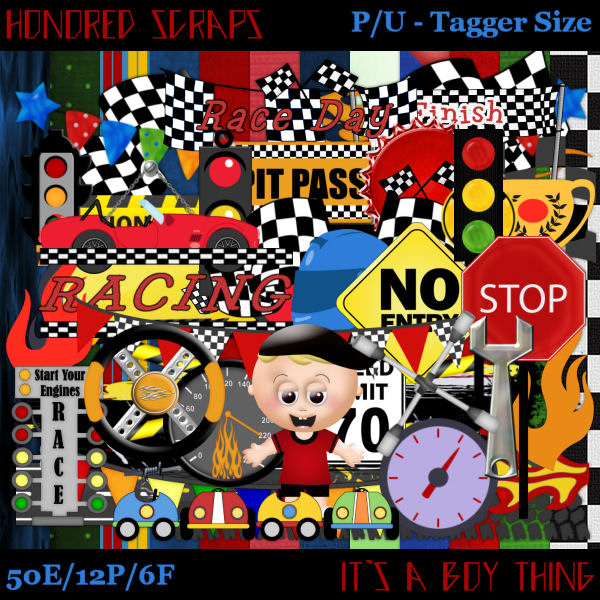 Vroom Vroom!!! It's a Boy Thing is full of all the papers & elements you need for your little boy creations. This tagger kit consist 50 elements, 12 papers and 6 frames.