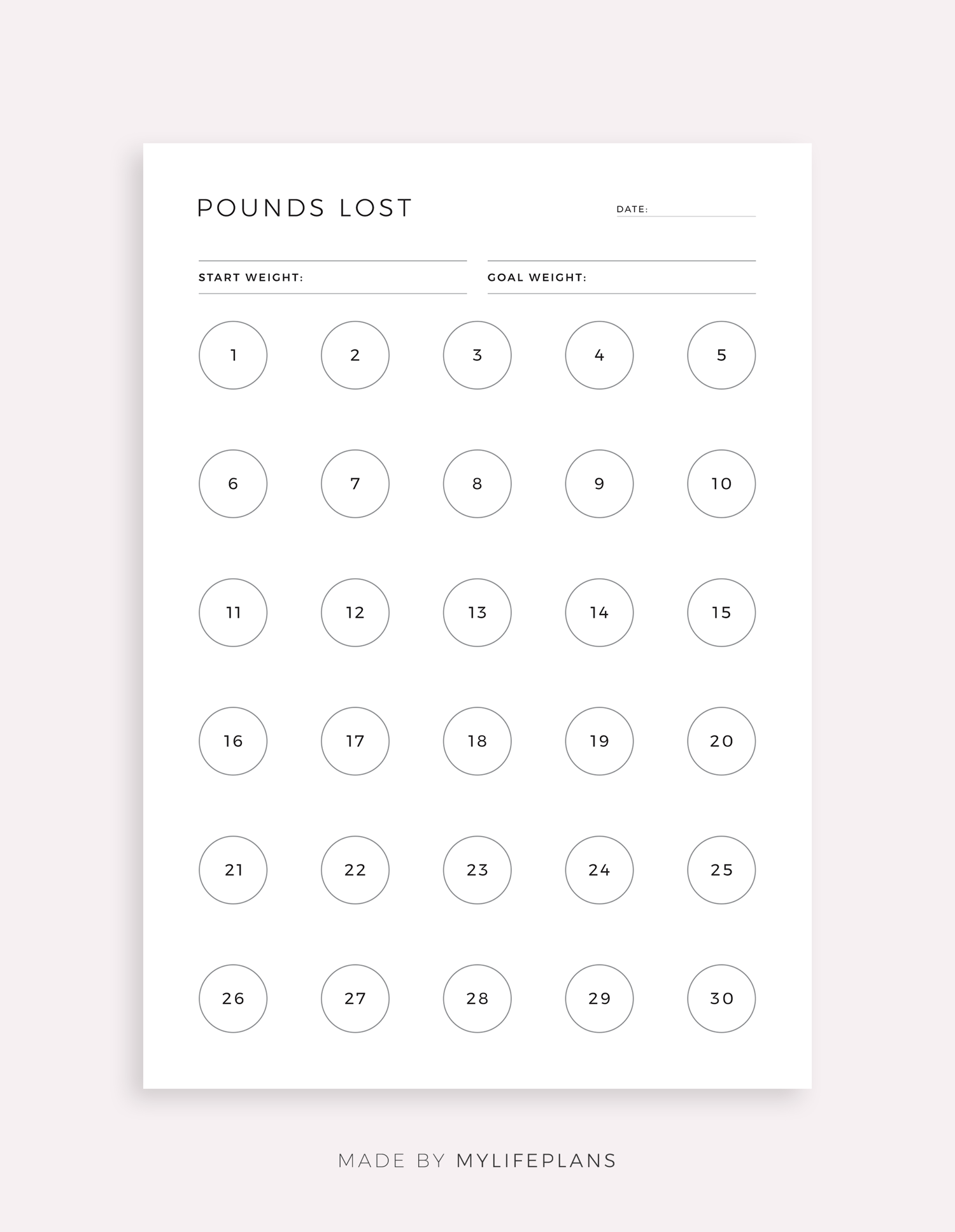 This is a printable 30 pounds lost weight tracker — just download, print, and start using it right away.
