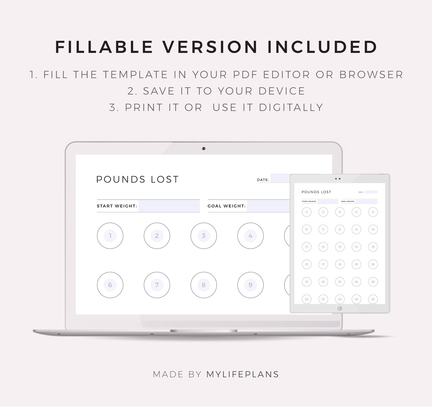 30 Pounds Lost Weight Tracker, Printable & Fillable, A4/Letter Size