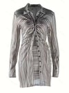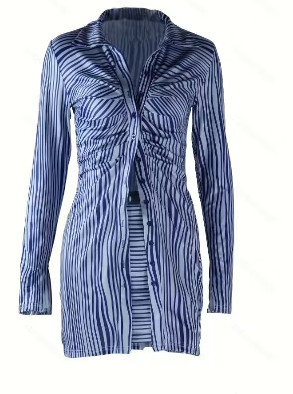 European and American Fitted Skirt Set with Striped Single-Breasted Mid-Length Shirt and Mini Short Two-Piece Set for Women
