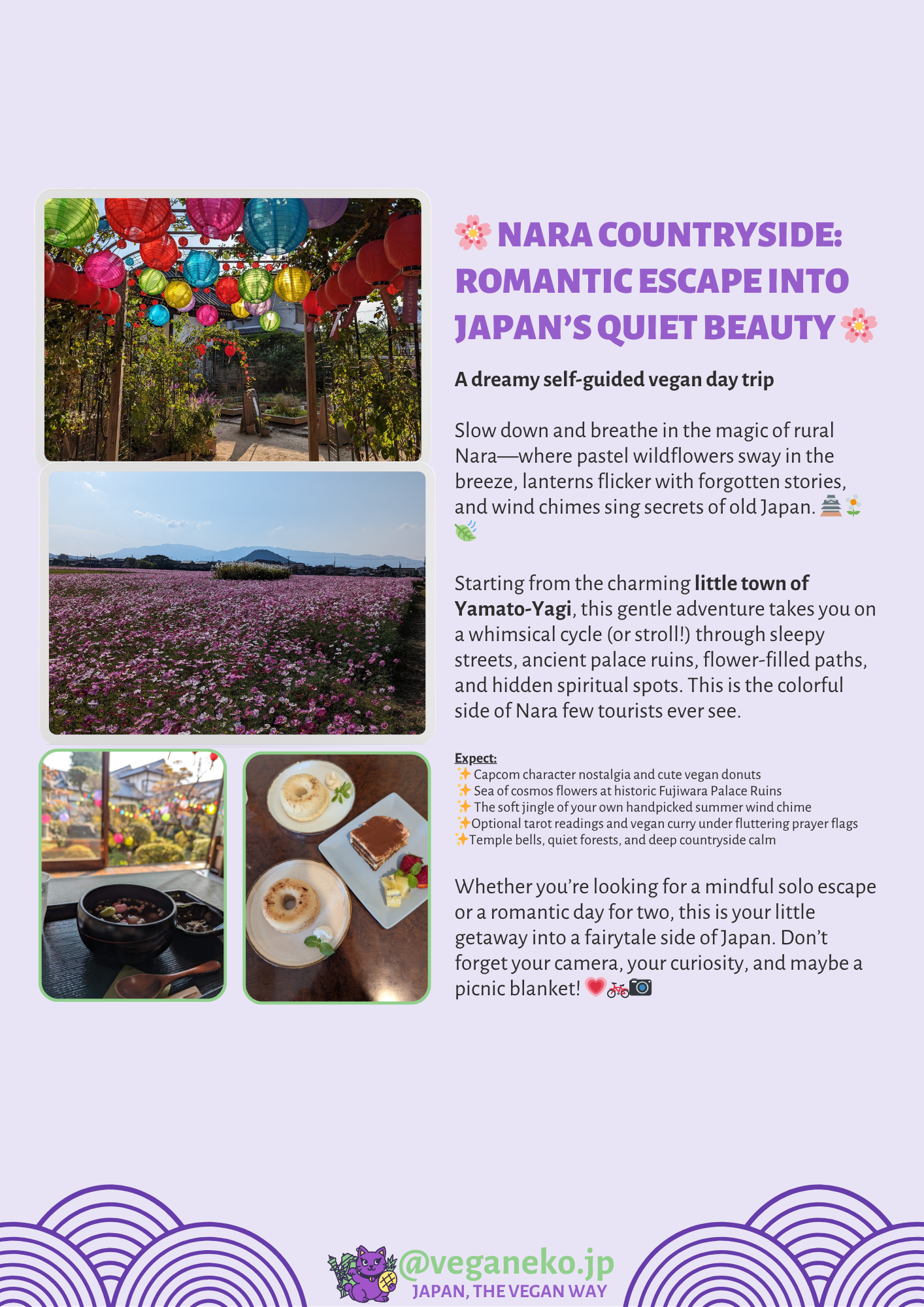 Whether you’re looking for a mindful solo escape or a romantic day for two, this is your little getaway into a fairytale side of Japan. Don’t forget your camera, your curiosity, and maybe a picnic blanket! 💗🚲📷