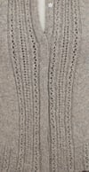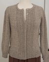 Lace can be lightweight without being delicate, as demonstrated by this intriguing cardigan. Start at the lacy ribbed bottom trim and knit through eyelet panels that run parallel right up the front. The central back eyelet panel comes to an end at the double-knit back band, but the eyelets are echoed in a appealing panel at the base of the neck and in an eyelet pattern at the cap of the sleeves. Double-sided front and neckbands and your choice of hidden closures give classic lines to a cardigan with a romantic soul.