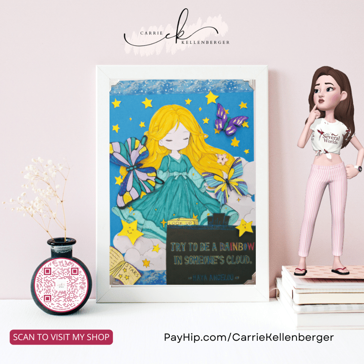 My paper cutting technique adds an extra 3D dimension of beauty and intricacy to each design, making my collages a delightful keepsake.They’re meant to brighten any space: an office cubby, a senior’s bedside, a child’s room, a sunny kitchen, or anywhere your heart desires.