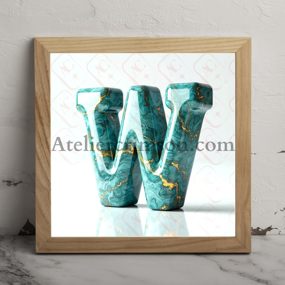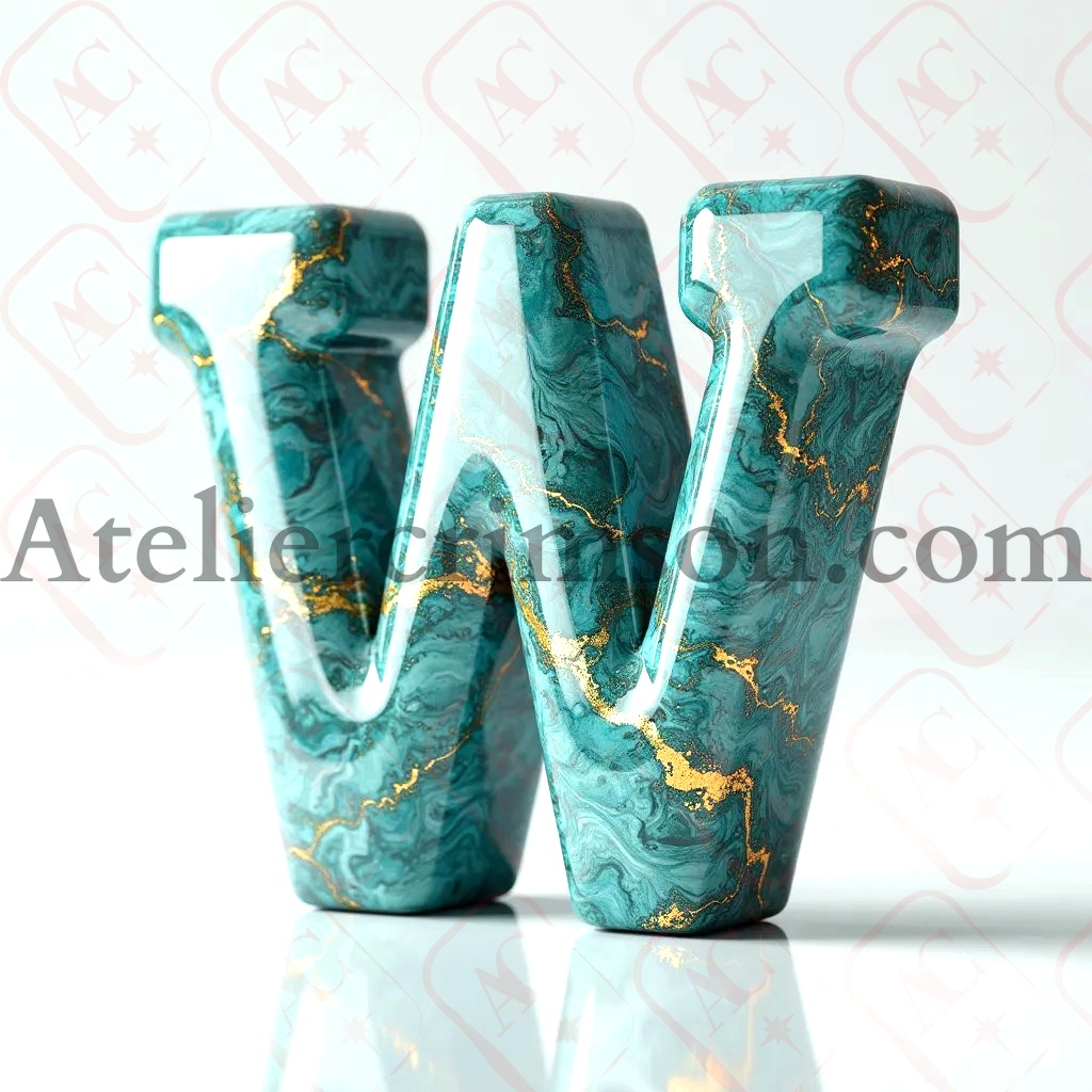 The letter W marble blue green gold download Now this high quality AI-generated image, perfect for adding a touch of tranquility and creativity to any space.
