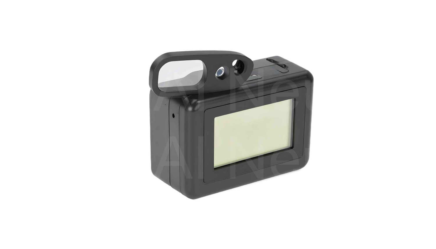 This highly detailed AI-generated image showcases a compact, black electronic device that resembles a simplified digital camera or a voice recorder, complete with a viewfinder and a screen. The clean, minimalist design and transparent background make this visual versatile for representing various portable technologies and gadgets.