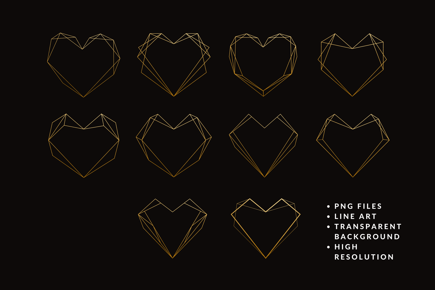 This Geometric Love-Heart Shape Gold Frames Collection will help you create a huge range of products - DIYs, wall art, posters, cute gifts for your loved ones, mugs, cards, monograms, wedding invitations, party invitations, party decorations, flyers, blogs, beautiful branding, packaging, notes, albums, greeting cards, stationery items, journal kits, scrapbook elements, stickers, social network templates and promotions, sublimation design, covers and much more!