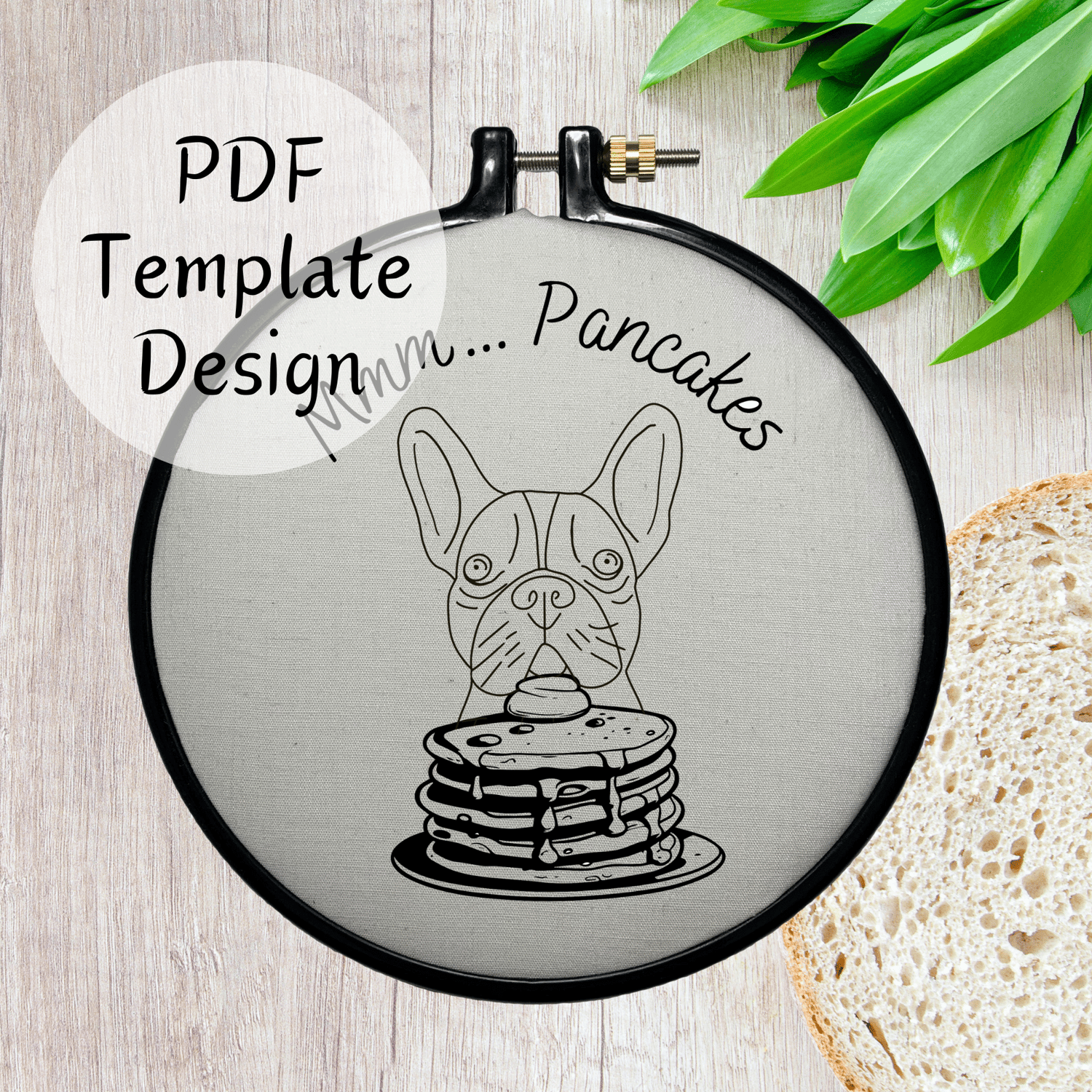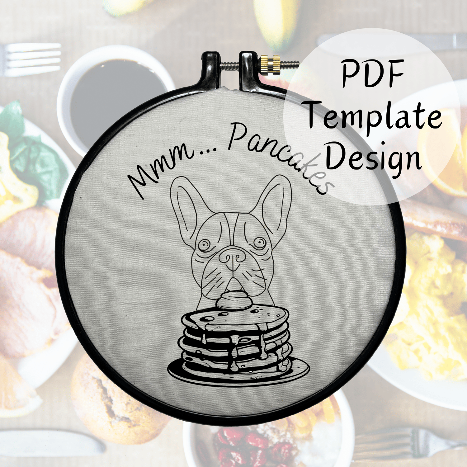 Frenchie Pancakes Hand Embroidery Pattern - DIY Design