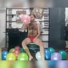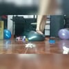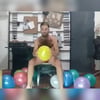He blows to pop, sits,squeezes and stomps balloons! Enjoy