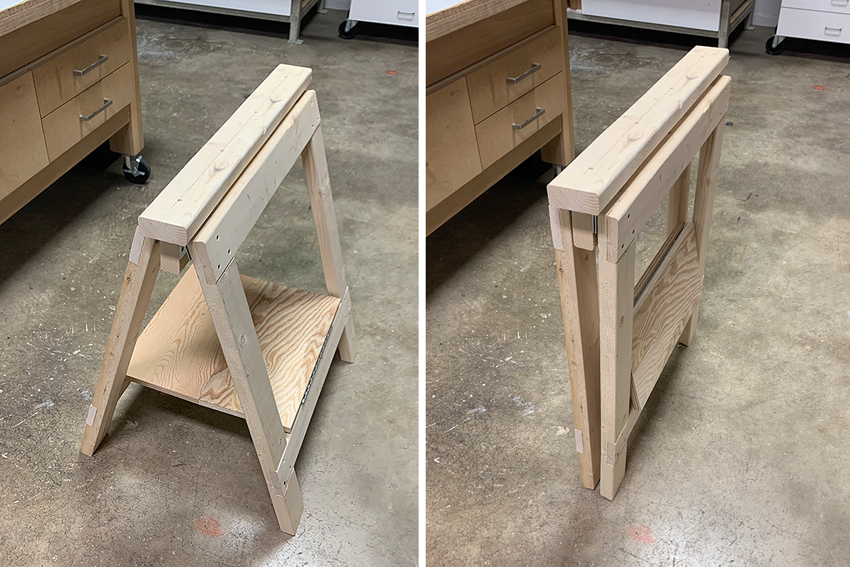 Sturdy, foldable, and featuring sacrificial tops and convenient shelves, this set of sawhorses is custom tailored for DIY projects around the house and yard.