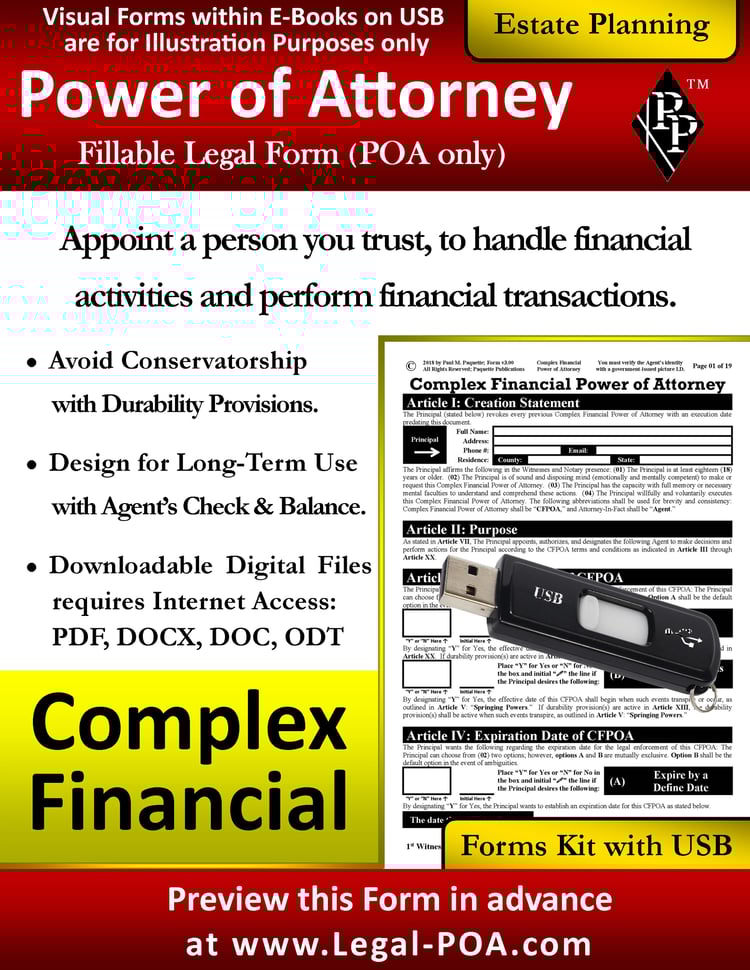 This Power of Attorney works only in conjunction with other Complex & Durable Power of Attorney that is Publish by Paquette Publications.