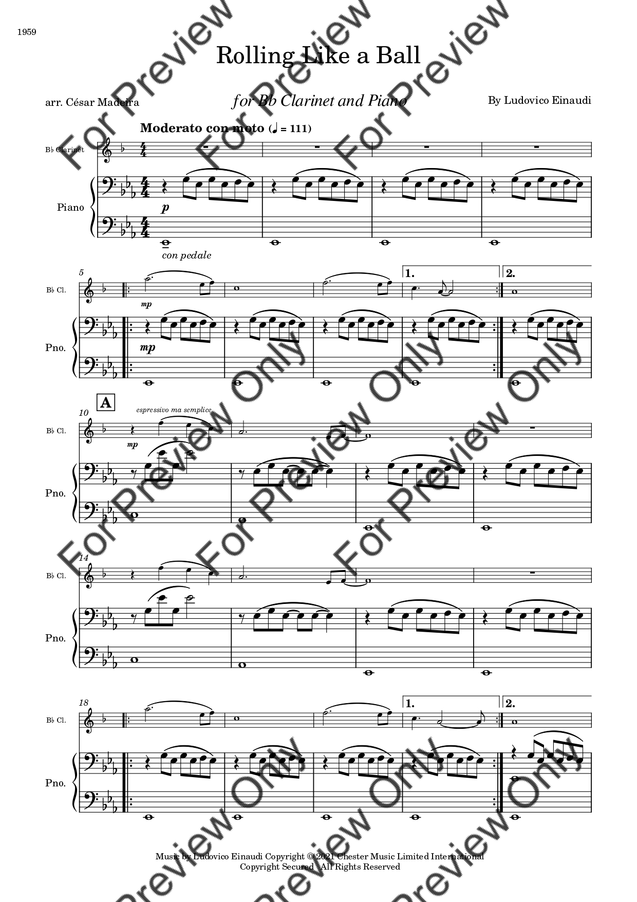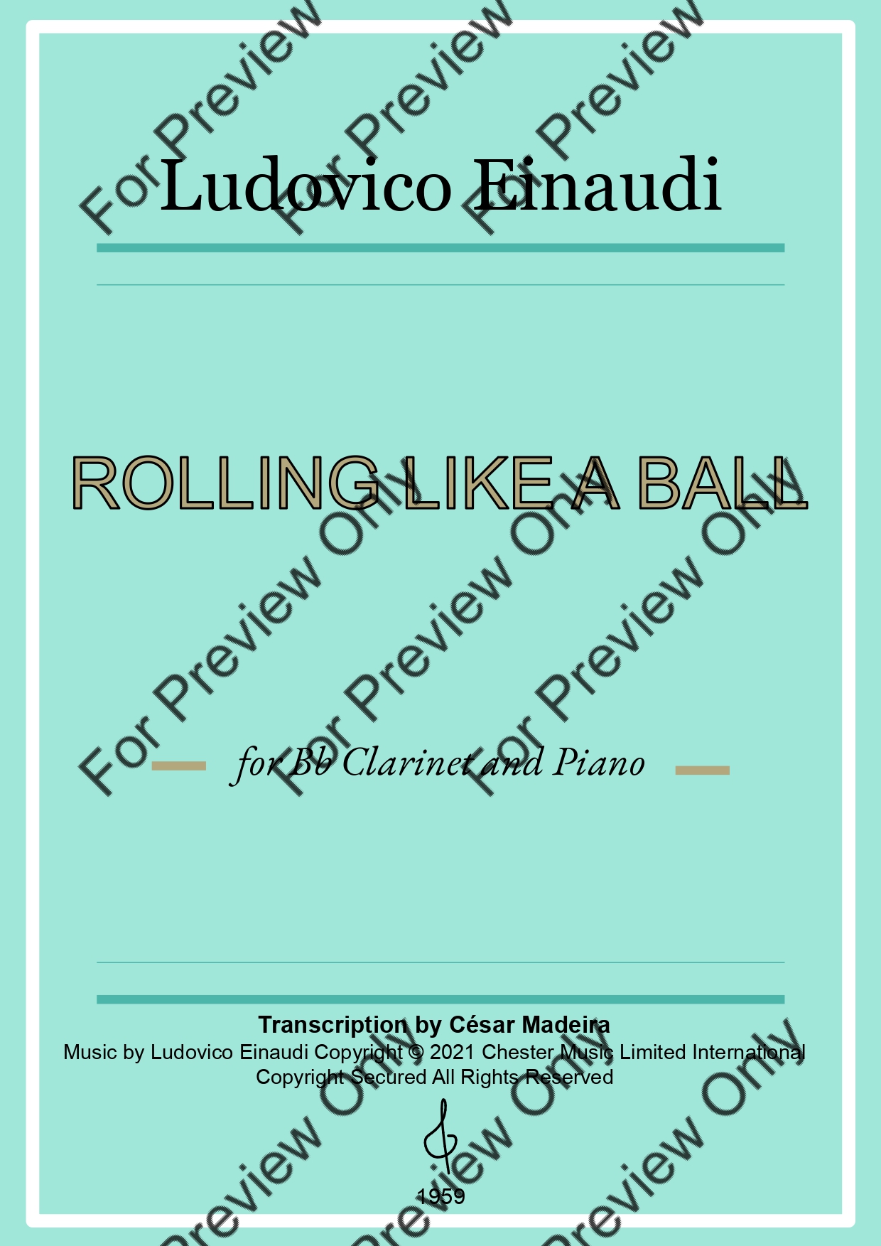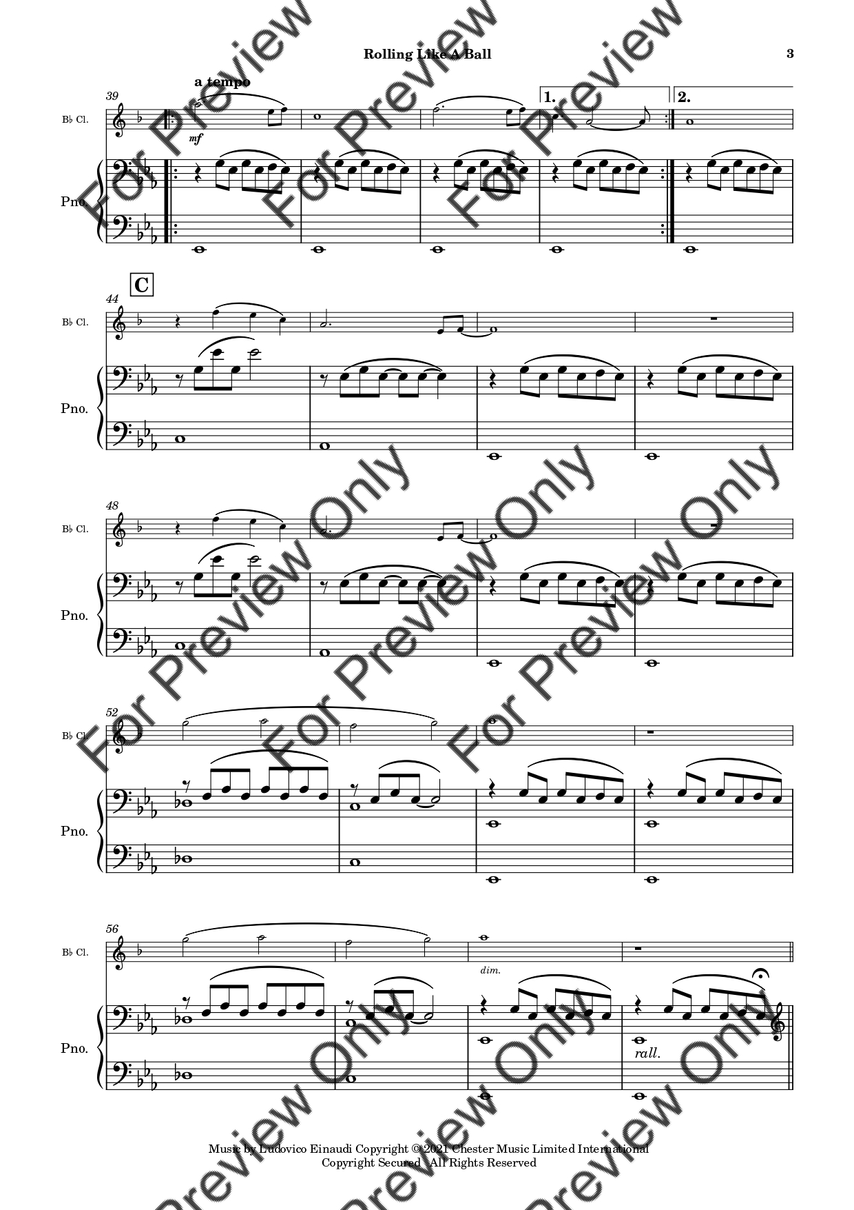Rolling Like A Ball by Ludovico Einaudi. Arrangement for Bb Clarinet and Piano. With Full Score and Individual Parts. Have fun!