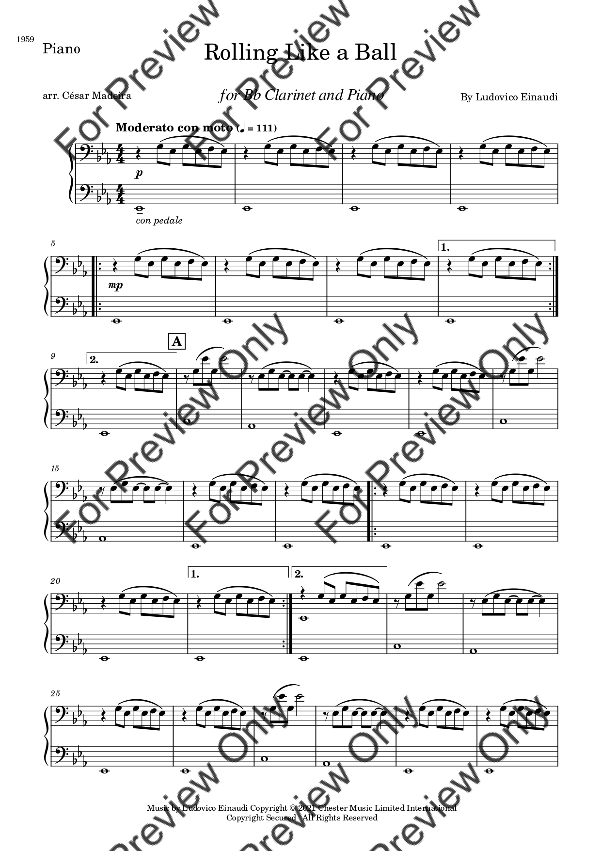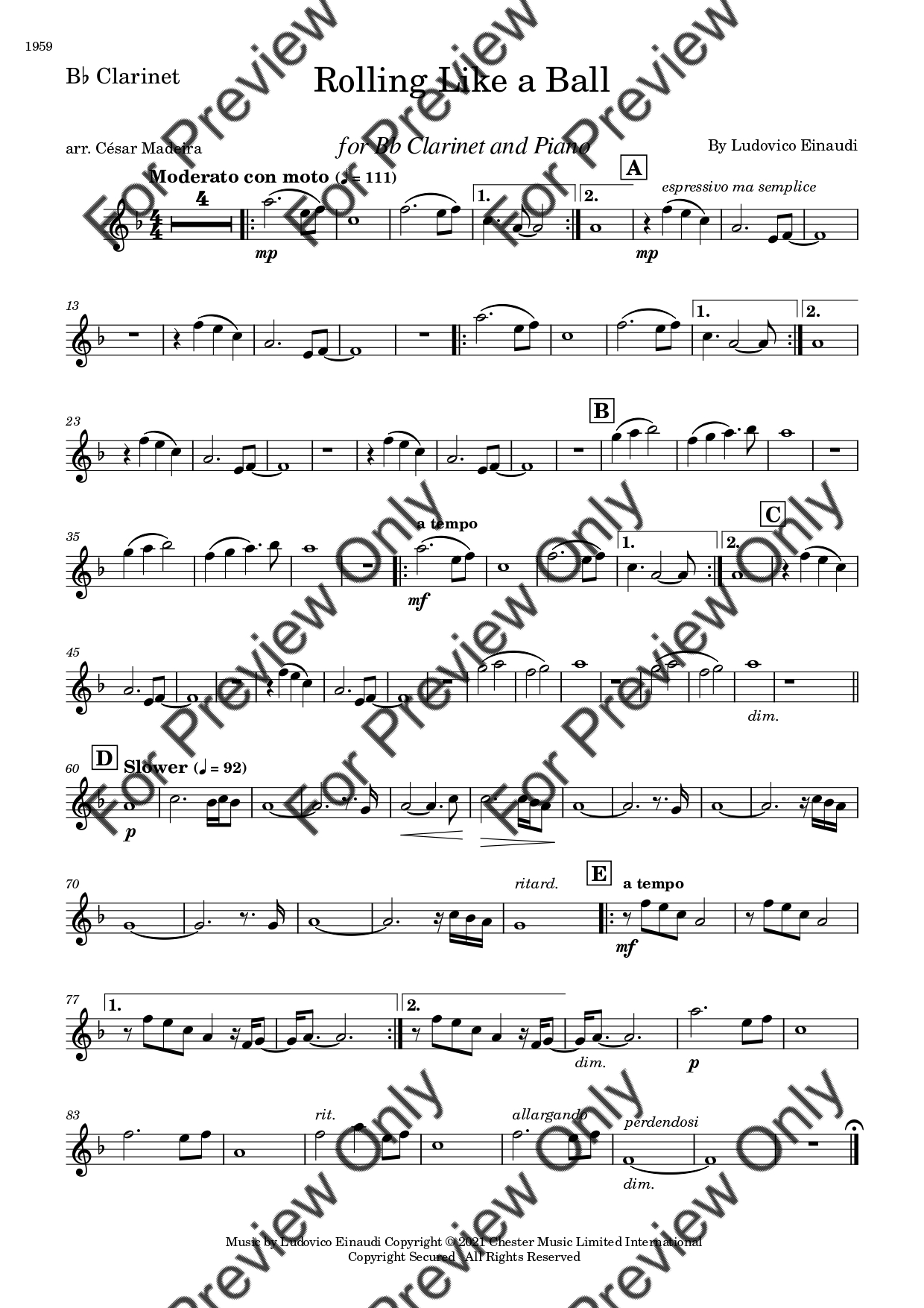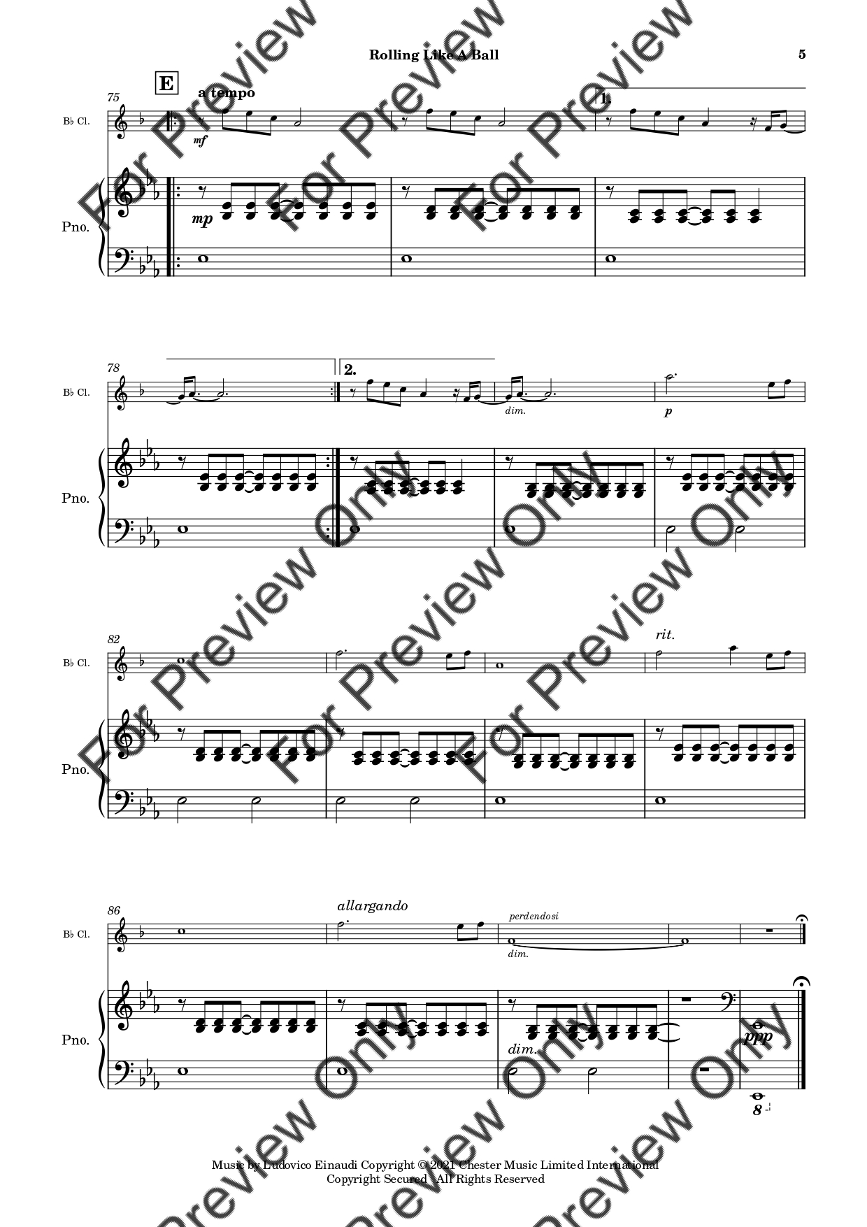 Rolling Like A Ball by Ludovico Einaudi. Arrangement for Bb Clarinet and Piano. With Full Score and Individual Parts. Have fun!