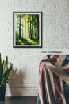 This artwork captures sunlight streaming through trees, symbolizing balance, hope, and mindfulness — a perfect addition to calm any living space.