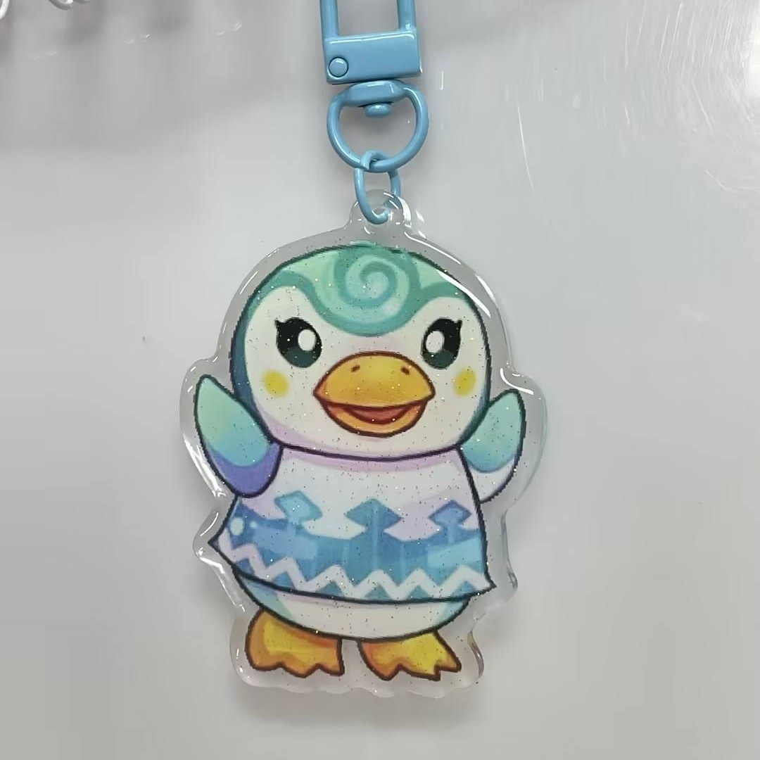 Cute keychain of Sprinkle from ACNH! Has glitter overlay and comes with matching blue keyring. Perfect for your keys or even purse!