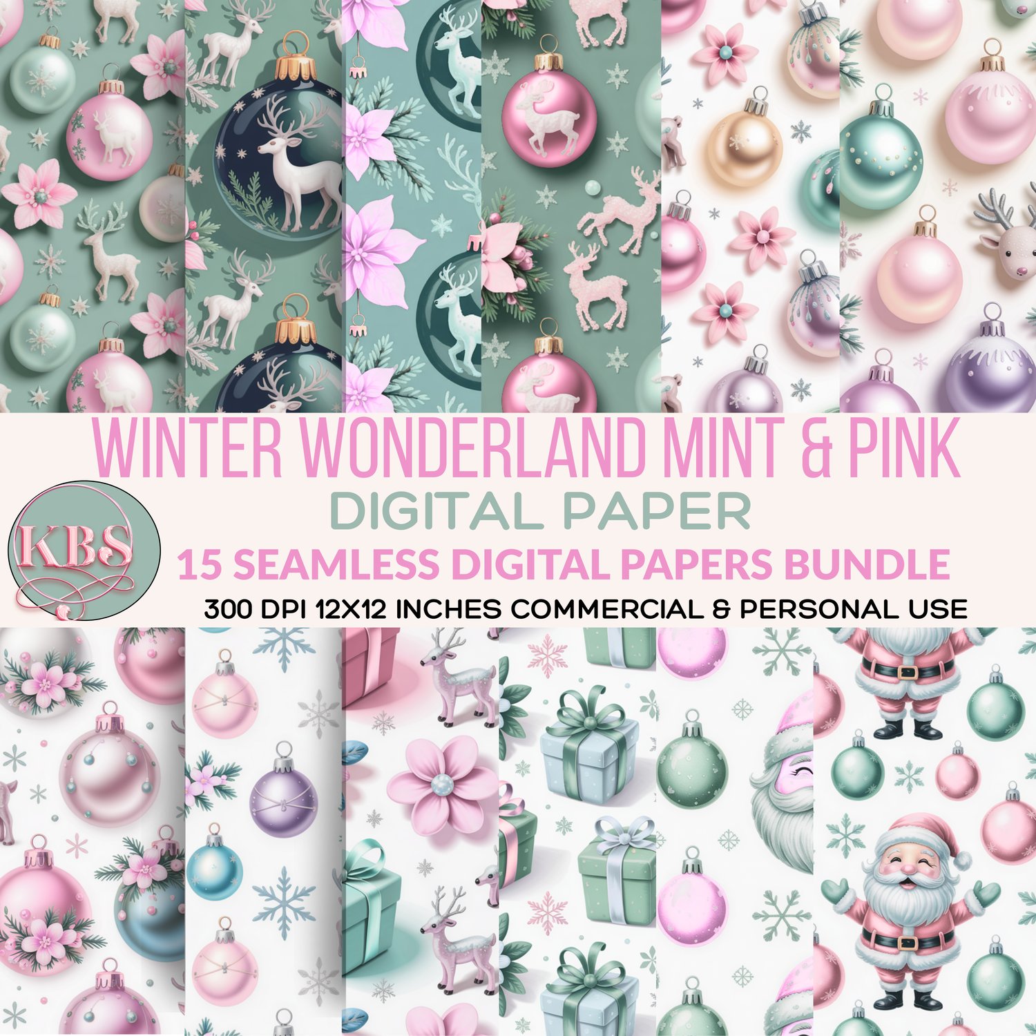 ✨ Winter Wonderland Mint & Pink Digital Paper Bundle | 15 Seamless Designs (300 DPI) ✨