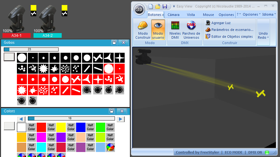 - Esta librería NO reemplaza al Fixture de Freestyler o QLC+, sólo es para ver la representación 3D. Es decir, HAY QUE TENER YA EL FIXTURE DE FREESTYLER o de QLC+ para controlar el equipo real.