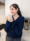 Bakehouse is knit seamlessly from the bottom up. The body is knit flat to the underarm, and after splitting for the arms the back and fronts are worked separately. The live stitches are then seamed together at the shoulder. The sleeves are worked in the round from the shoulder to the cuffs, and the button band is worked last.