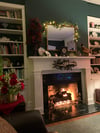 Each stitch tells its own quiet tale, echoing the warmth of the farmhouse library that surrounds the fireplace.