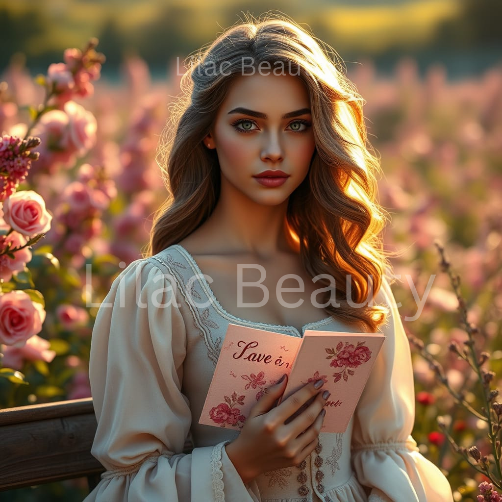 This AI-generated digital artwork captures the charm of a young woman in a flowing medieval gown, delicately holding a Valentine’s card while seated on a floral-adorned bench. The soft colors, intricate embroidery, and romantic atmosphere make this piece perfect for lovers of fantasy, history, and elegant digital art. Ideal for Valentine’s Day gifts, wall decor, or collectors of medieval-inspired artwork.