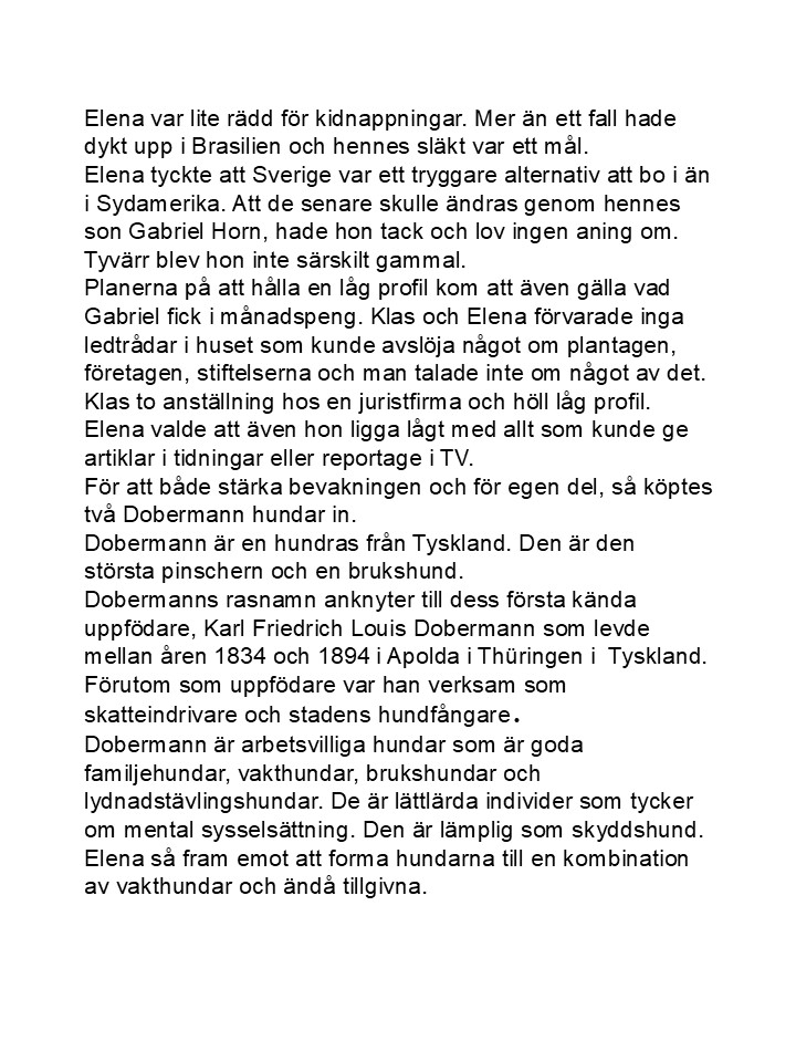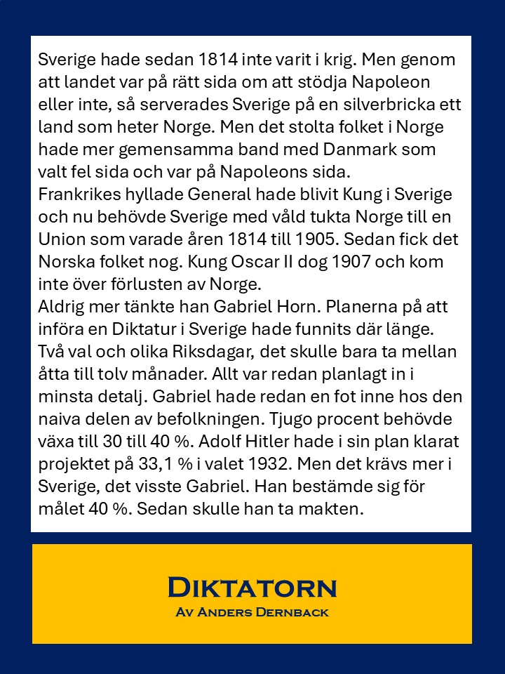 Följ utvecklingen av texten som utökas varje vecka tills manuset är klart. Skrämmande utveckling i mitt första manus som blev "Styckat Land" skrivet år 2006. Sedan hände liknande händelser. Jag blev rädd. Du kan söka texten och kan ladda hem den både på svenska och engelska. "Styckat Land" har också en egen hemsida: