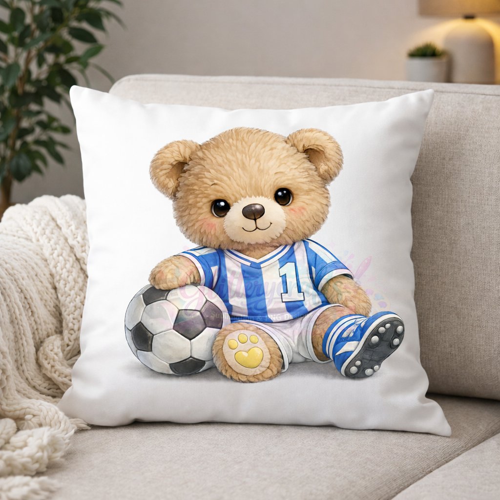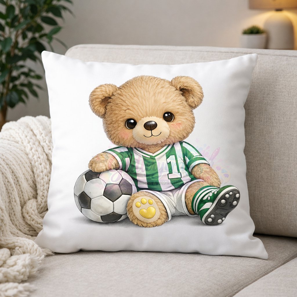 x 3 cute teddies in striped football outfits and x 3 cushion mock ups without my logo for you to advertise.