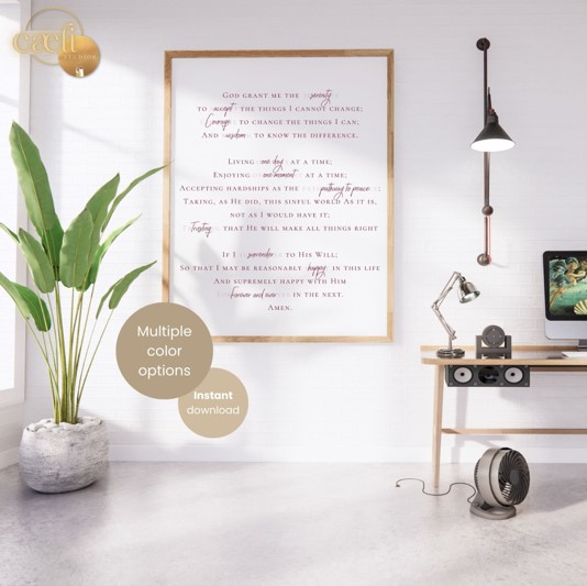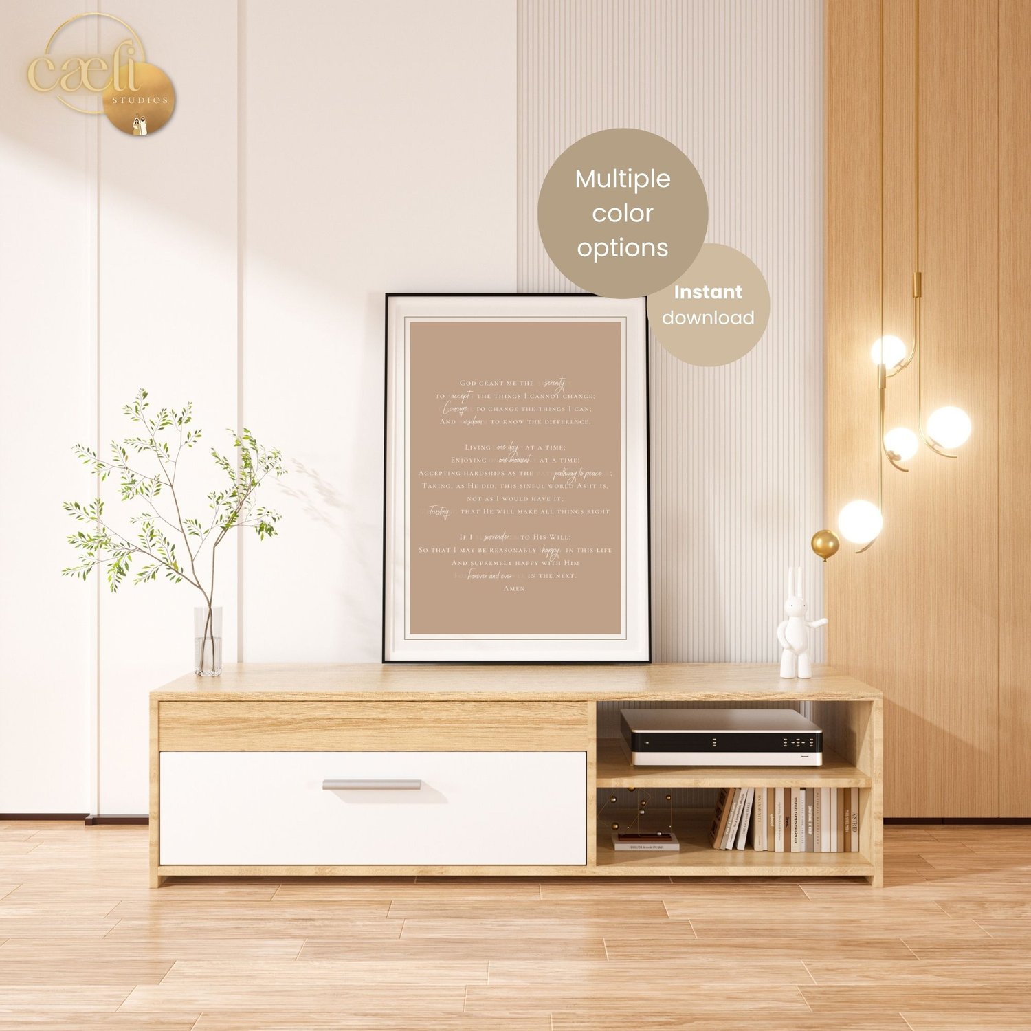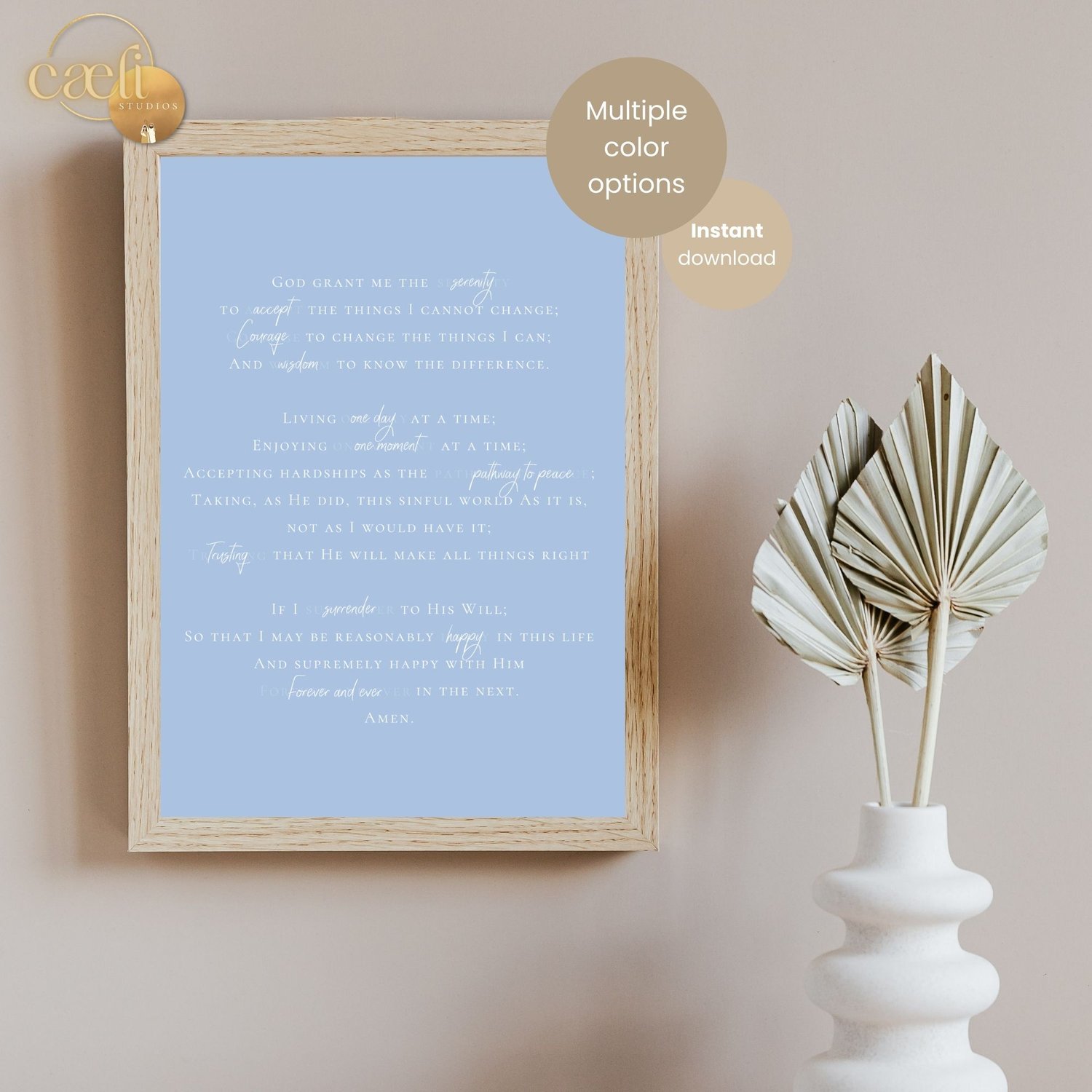 This digital download includes a Serenity Prayer printable wall art design perfect for a modern, minimalist or bohemian Christian home with 10 different color options.