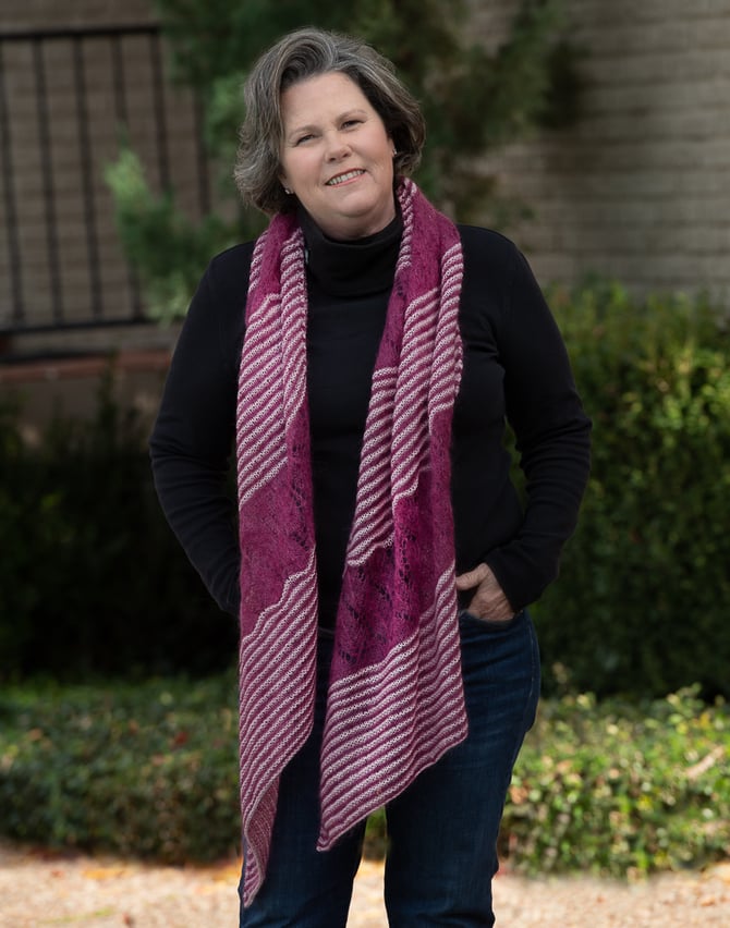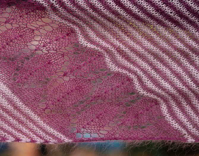 ABOUT THE PATTERNThe Bosque Wrap is an elegant bias wrap, with playful stripes and a surprisingly easy leafy lace. “Bosque” is the Portuguese word for woods.
