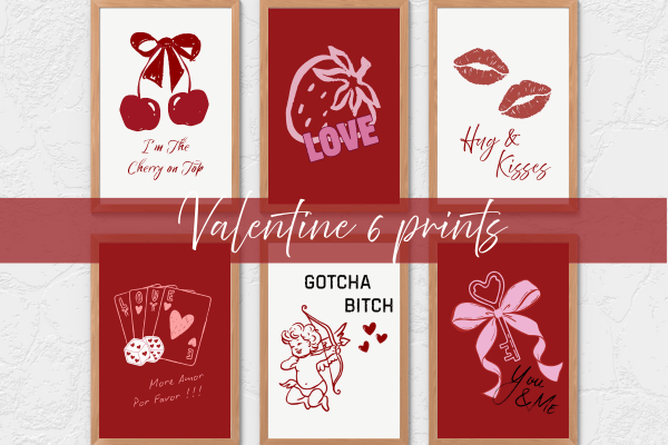 Valentines Day Prints Set Of 6 | Valentine pink & red printable wall art | Valentine home decor