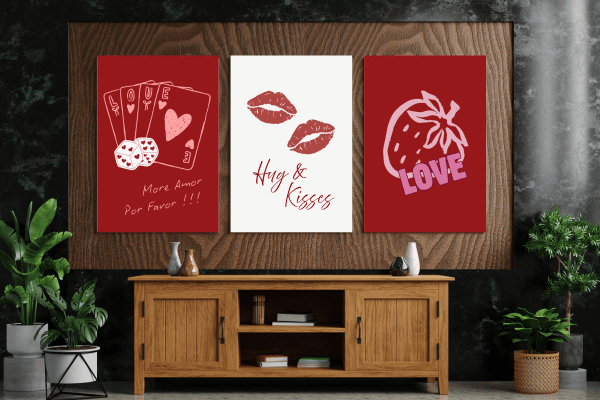 Add a stylish pop of romance to your home with Bold Red Valentine’s Day Gallery Wall Art Set. Whether it’s your living room, bedroom, or kitchen & dining area, we’ve got designs that will elevate your space with a sophisticated, yet playful touch. These prints are perfect for rooms with soft, neutral tones, creating that calm, cozy vibe that’s just so inviting.