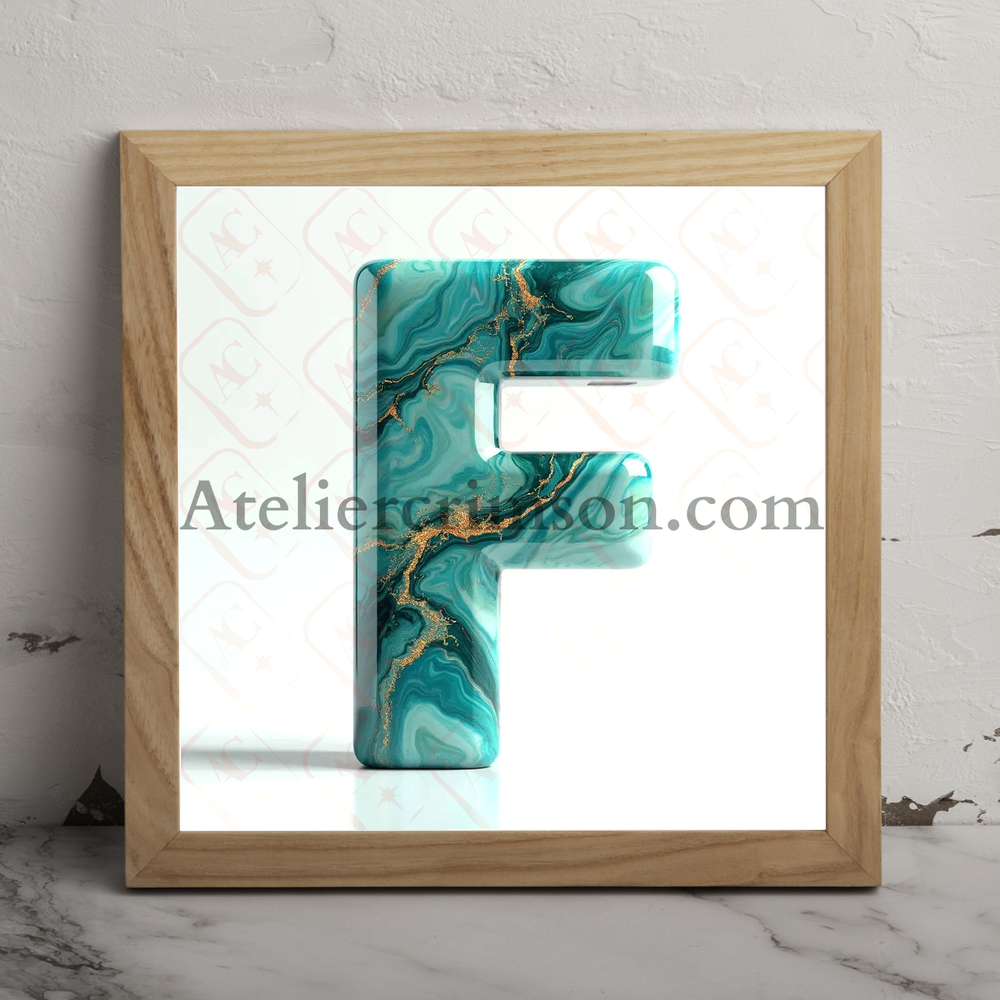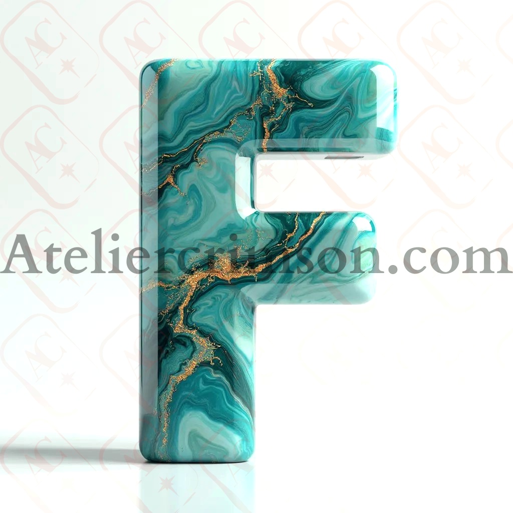 The letter F marble blue green gold download Now this high quality AI-generated image, perfect for adding a touch of tranquility and creativity to any space.