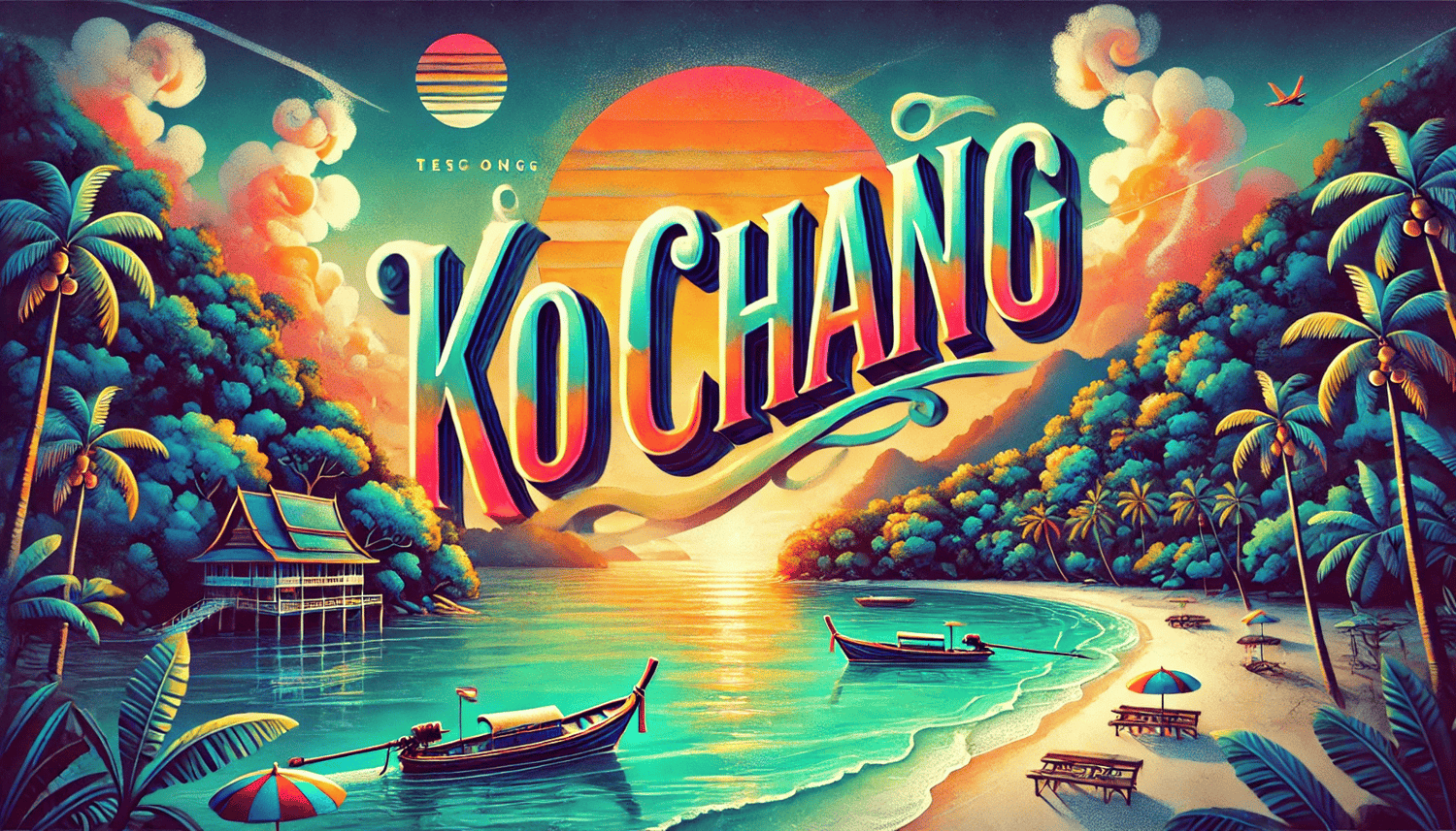 - The bold, colorful typography of "Ko Chang" gives the artwork a classic travel poster look.