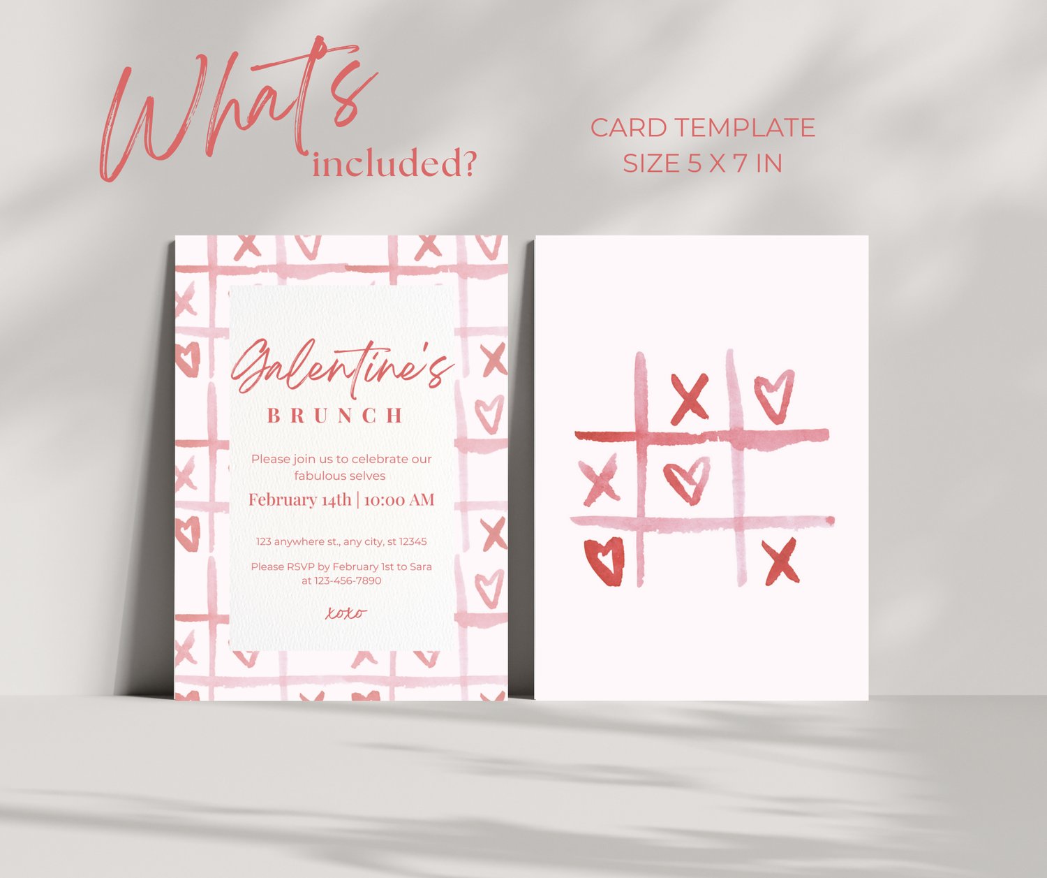 Love Tic-Tac-Toe, xoxo, Galentine's Brunch Invitation Card Canva Template