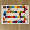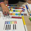 Students roll the dice and move their pawns to the color blocks. They must recognize the note be the block color and then draw it to a paper. When they reach the end they must play the written notes on the piano (or the instrument that they learn).
