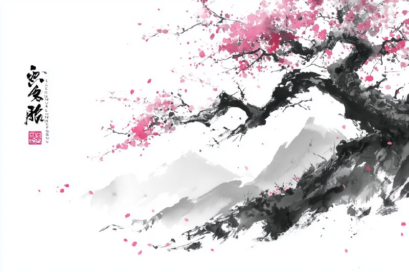 Luxury Japanese Sakura Wall Mural – Premium Ink Art Prompt